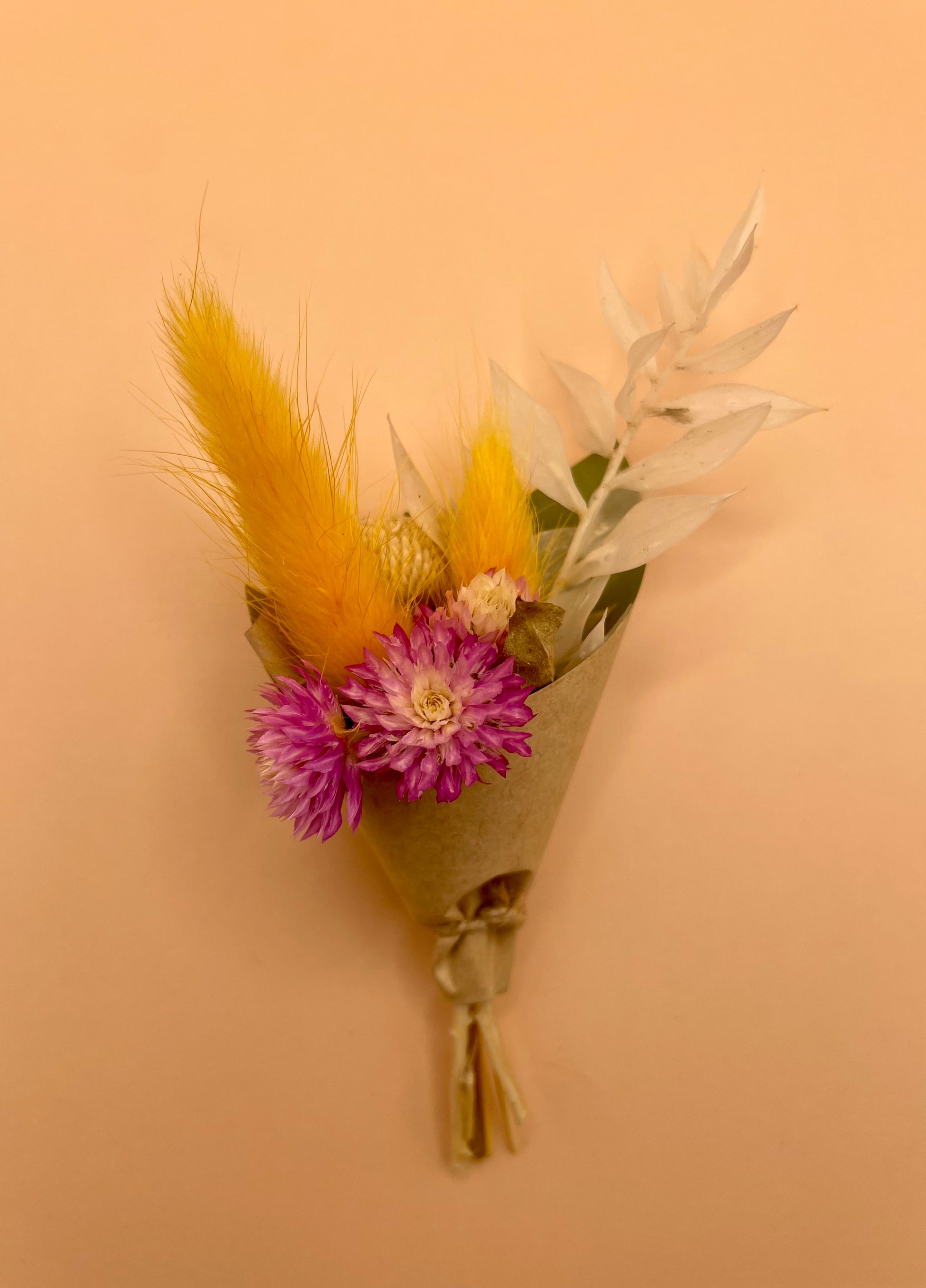 Our handcrafted mini bouquets are a unique and charming way to add a lasting touch of natural beauty to any occasion. Each bouquet is lovingly created using a mix of dried flowers, carefully arranged for a timeless look.